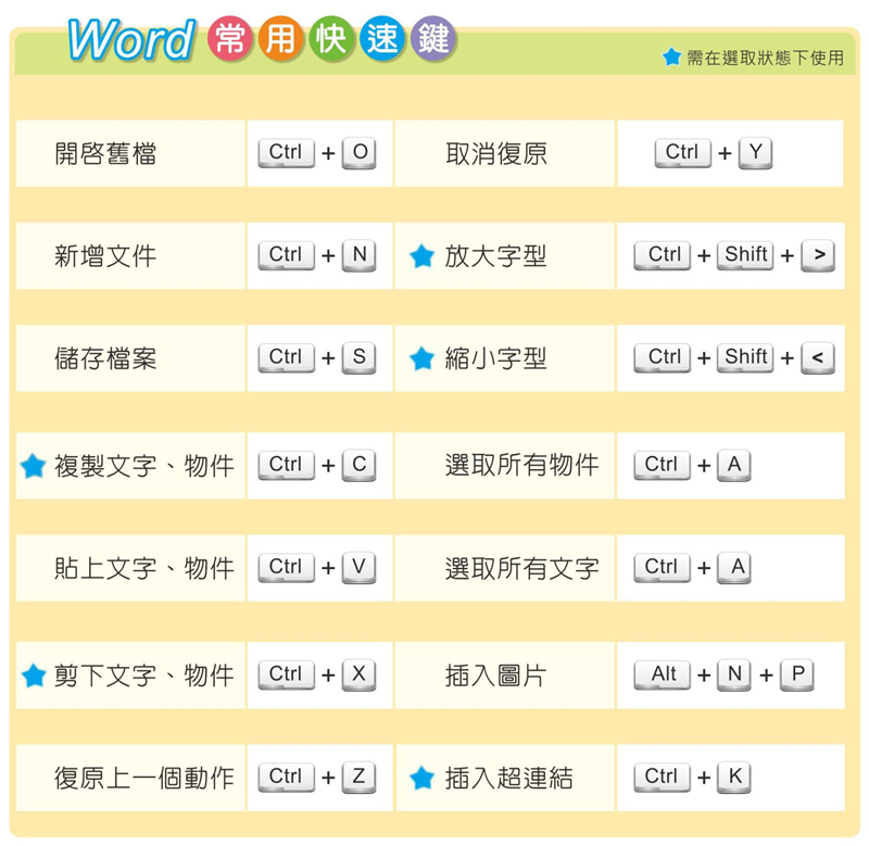 Word 常用快速鍵